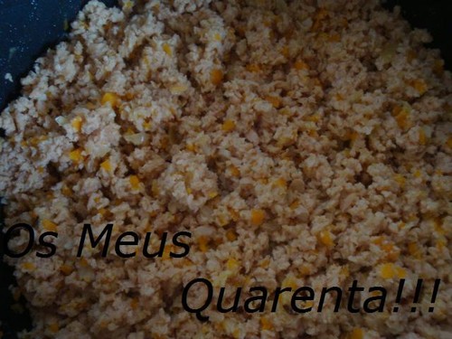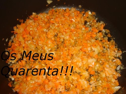 § Num tacho pôr a refogar o preparado anterior com o azeite.